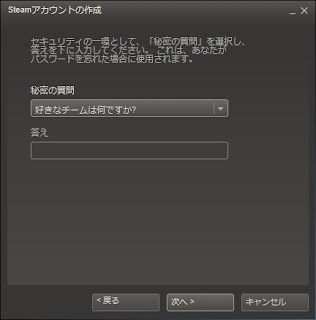 秘密の質問です。推測されにくいものにしましょう。次へをクリックします。