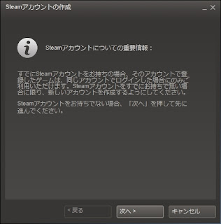 Steamをインストールし、起動すると、次のようなウィンドウが出ます。